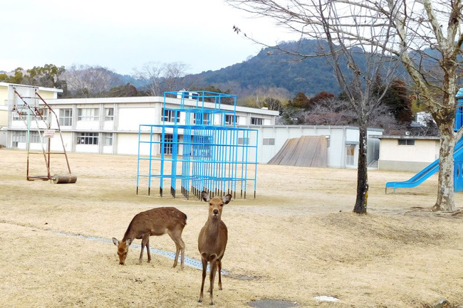奈良市内でも、公園から遠く離れた住宅街や学校の校庭、河川敷などで見かけるようになった。そんな風景は、奈良市周辺の住民からすると珍しくない。毎度のことなのである。