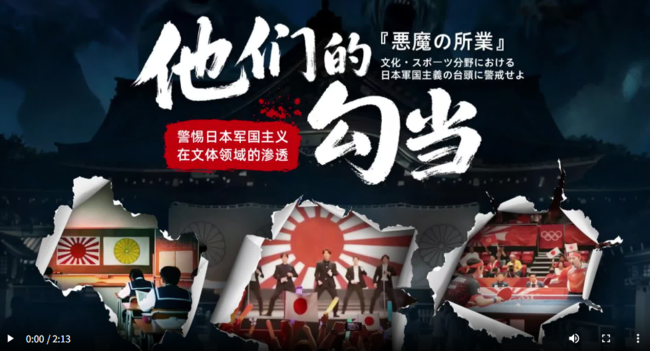 また、2月8日には人民解放軍機関紙の解放軍報のウェブ版にあたる中国軍網に「文化・スポーツ分野における日本軍国主義の台頭に警戒せよ」と題した記事と動画が掲載された。