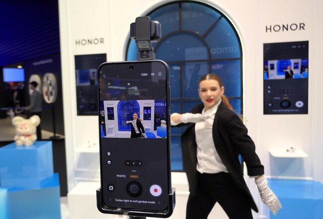 中国の大手通信機器メーカー、華為技術(ファーウェイ)の傍系企業である端末メーカー、Honor(オナー)は、スマホのカメラが外側に飛び出し、小型モーター付きのジンバル(3軸安定装置)によって被写体を追尾したり、音楽に合わせて踊ったりする「Robot Phone(ロボットフォン)」のコンセプトモデルを発表し、会場で大きな話題を呼んだ。中国ドローンメーカーのDJIが開発したジンバル付きの超小型カメラをスマートフォンに組み込んだような形だ。