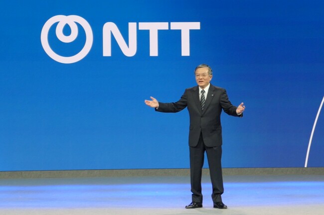 今年のMWCでもうひとつ注目されたのがNTTグループによる7年ぶりの共同出展と島田明NTT社長による基調講演だ。MWCにはこれまでNTTドコモが中心となって出展してきており、NTTデータグループなどは別にブースを構えていた。