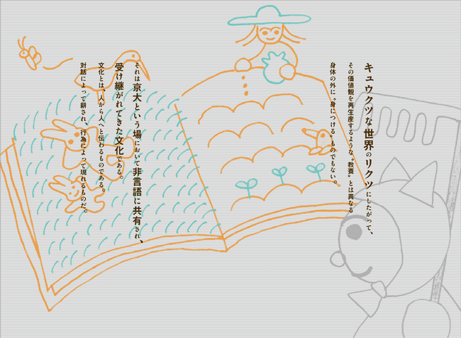 読者のみなさんに、まずは「京大的」とはなんであるかをイメージしていただきたいので、序章と第一章では京大的文化と教養部をご紹介。清水さんが「なんて自由なんだろう!」と感じた世界観を共有します。第二章では、京大新入生を翻弄したという、教養部の教え「アホなことをせぇ」と「ホッタラカシ」について解説。京大的教養をインストールする地ならしをします。