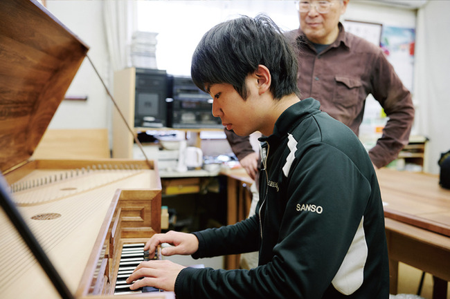 三創楽器には、若き後継者がふたりいる。松村直太朗さん(22歳)と佐藤琳さん(23歳)である。