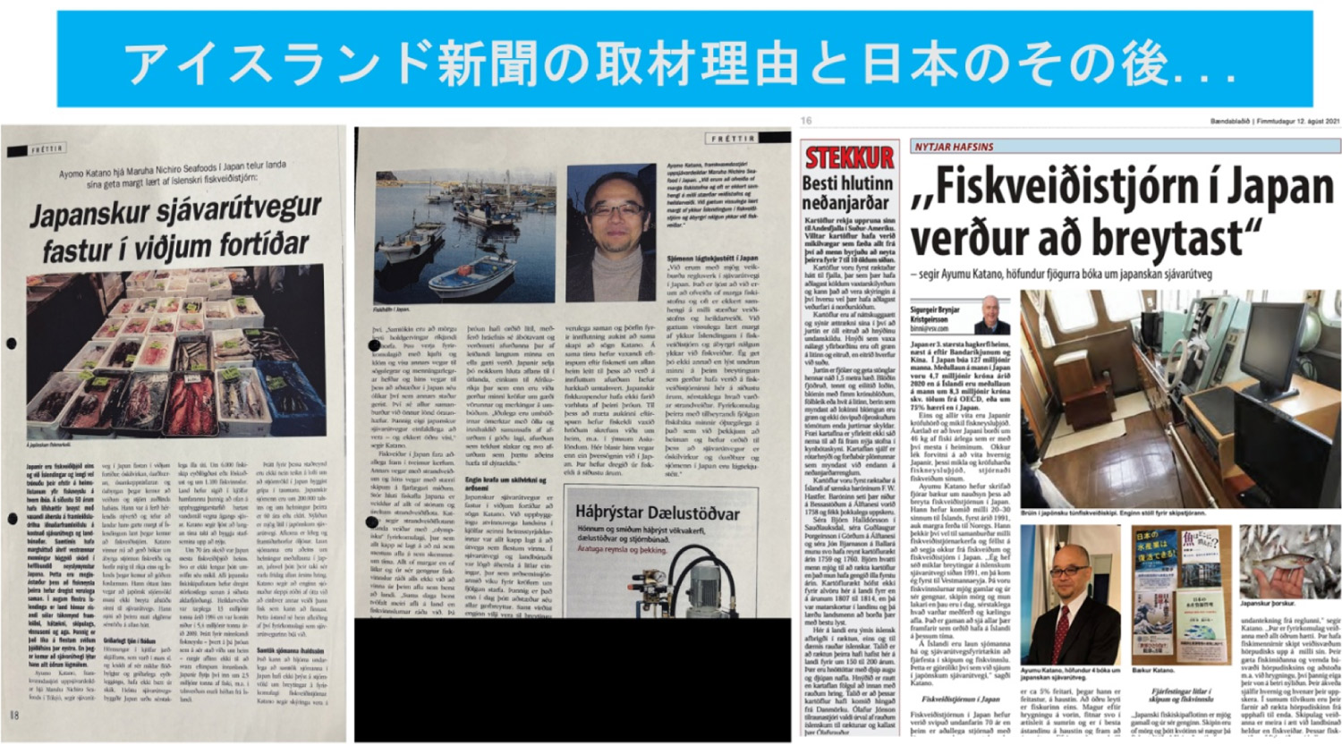 買付先のアイスランド企業の社長に、日本ではTAC(漁獲可能量)魚種が少ないことや、TACが設定されていても、大きすぎて全く意味をなさないことなどを話すと、非常に驚かれて「すぐマスコミを呼ぶから同じ話をして欲しい」と言われ、それが特集のような形で記事になったのです。
