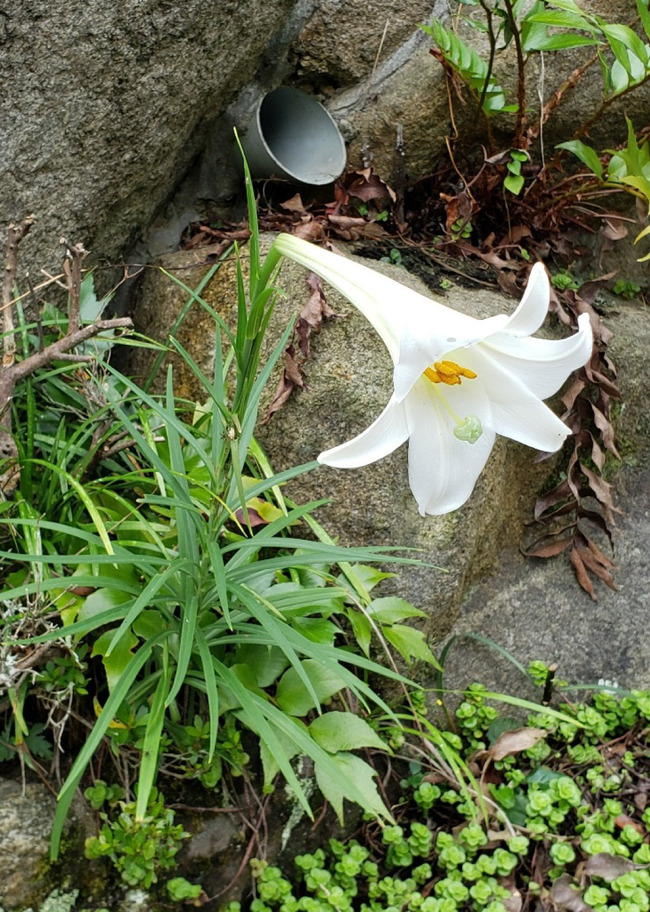 またムスカリは地中海沿岸地方が原産とされるが、品種改良が進み今では園芸植物として多く出回る。花壇に植える人も多いだろう。しかし、筆者が購入して植えたことはない。シンテッポウユリも交配で生み出された園芸品種だが、今やどこでも生える。