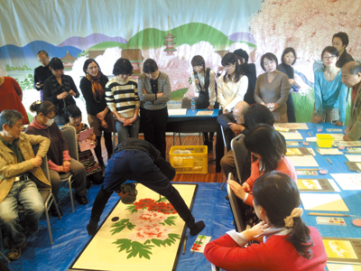 「和」がテーマのワークショップでの歌舞伎体験 (写真:グッドモーニングス社)