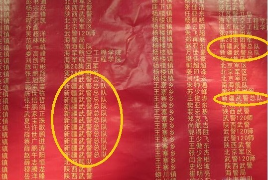 新兵の配置先一覧リスト。地方の軍機関が新兵任地の配置先を公表。多くの新兵が国内治安部隊の武装警察に配置され、特に新疆ウイグル自治区への配置が多いことが窺える。
