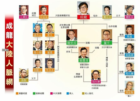 チェン氏は知名度を生かし、全国13の省や市で耀莱成龍国際映画城映画館を開業した。このほか、彼はしょっちゅう中央テレビに登場するが、今年(2014年)の春節晩会(日本でいう紅白歌合戦のような旧正月に放送され、風物詩的な出し物中心の文芸テレビ番組:筆者)では、ゲスト出演した。ここのところ中央テレビ局が芸能界において汚職取締りの矛先となっているが、これは周永康の賈暁樺夫人がかつて仕事をしていたこととの関連も指摘される。