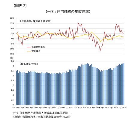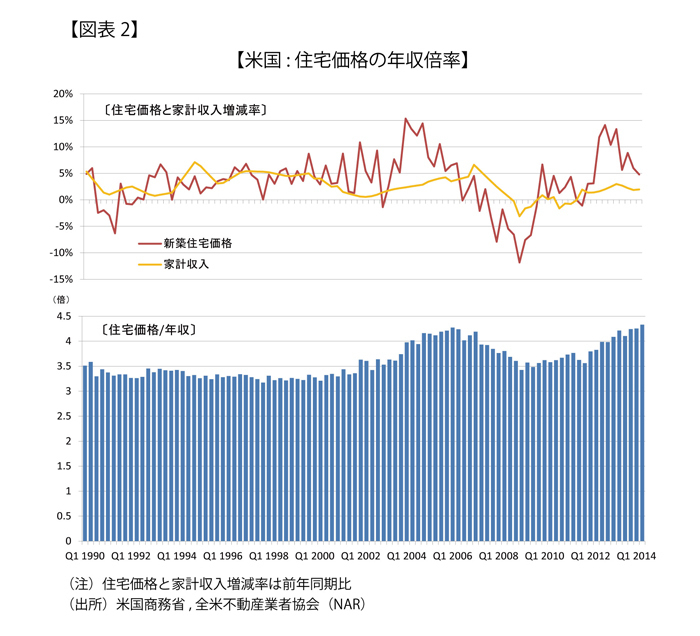 さらに、住宅価格の高騰で、住宅価格の年収倍率が急激に上昇した影響も見逃せない。実際、量的金融緩和政策が強化された12年以降住宅価格は急上昇しており、賃金上昇率の相対的な鈍さもあって年収倍率はリーマンショック前のサブプライローンを中心とする住宅ローンバブルのピークを超える水準となっている(図表2)。