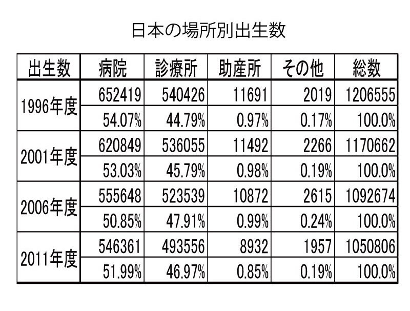 医療介入がない助産所で生まれている赤ちゃんの割合は、【図1】のように、全体の1%弱だけです。1984年から2012年までに、助産所で生まれた全ての赤ちゃんで作った、時間別の出生数グラフが【図2】です。朝に少し増え夕方に少し減る、きれいな海の波のようなリズムがあることがわかります。