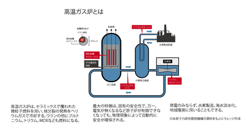 高温ガス炉やトリウム溶融塩炉などは、昨今の新技術ではなく、昔からある技術である。近年、軽水炉には大量の安全設備を設けることが必要になってきているが、高温ガス炉は物理現象で安全を確保していることもあって、コストも軽水炉より安い。日本は高温ガス炉開発では世界一であり、今すぐにでも建設可能な技術力を有する。