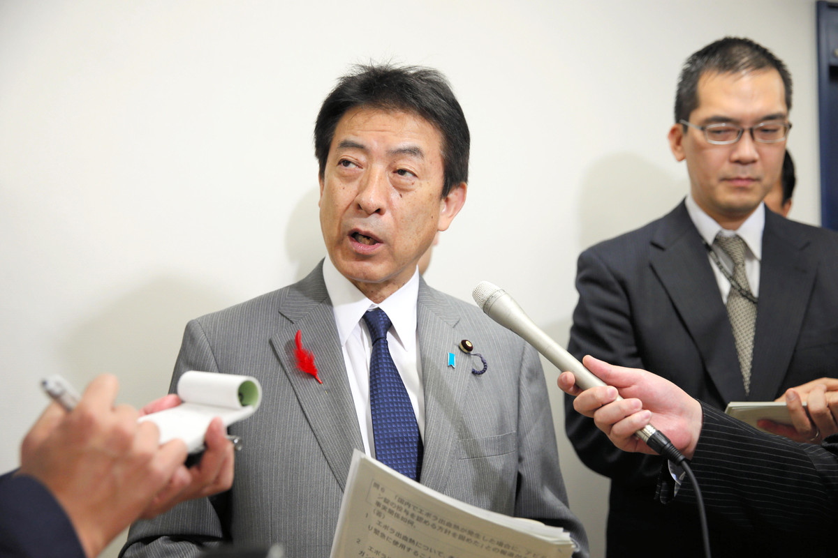 エボラ出血熱流行拡大を受け、国立国際医療研究センターの視察を行った塩崎恭久厚生労働相(10月22日、時事)