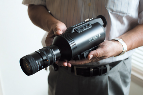 「これが世界初、暗い中でも照明なしにフルカラー映像が撮影できるカメラですわ。何はさておき実物を見てください」。そう話すのは、1933年(昭和8年)創業のカメラメーカー兼商社の駒村商会(東京都中央区)社長の駒村利之さん(68)。180センチをゆうに超す身長で、グレイヘアに高い鼻、低音だがよく通る声……。映画俳優みたいだなぁ、そういえば誰かににている……そうか、リチャード・ギアだ。