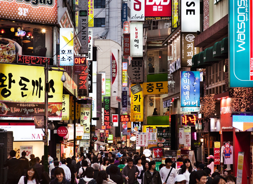 韓国の街中に溢れるハングル文字(写真:アフロ)
