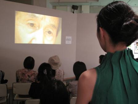 会場内のスクリーン画像。千佳慕さんの凛とした眼差しが映し出されている