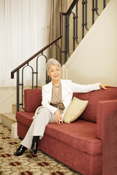 アップにした銀髪、くっきりと伸びた姿勢、気品の漂う優雅なたたずまい。草笛光子が待ち合わせの部屋に入ってきた時、まるでライトの色が変わるように室内に華やかな光が広がっていく不思議な感じを覚えた。これが大女優の放つオーラというものなのか。でも、それなのになぜか威圧感がない。1950年に5期生としてSKD(松竹歌劇団)に入団とプロフィールに書いてあったから、芸能の世界で生きてきた年月は今年で65年になる。しかし、思わずポカンと見とれてしまう草笛の美しさと若さの前では、そんな計算はどこかに飛んでいってしまう。