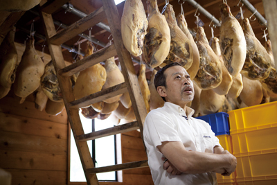 70歳になって絵を描き始めた長岐俊彦さんは、もともとは大手百貨店などにも勤めたマーケティング専門家。芸術活動が高じて仙北に「巨木の森・野外美術館」を作った。豚の飼育は長老の加藤義直さん、国有林での放牧を担当する。豚だけでなく、羊やヤギ、ニワトリも放し飼いにし、生ハムだけでなく、ソーセージやベーコンなど様々な加工品作りにつなげるのが目標だ。