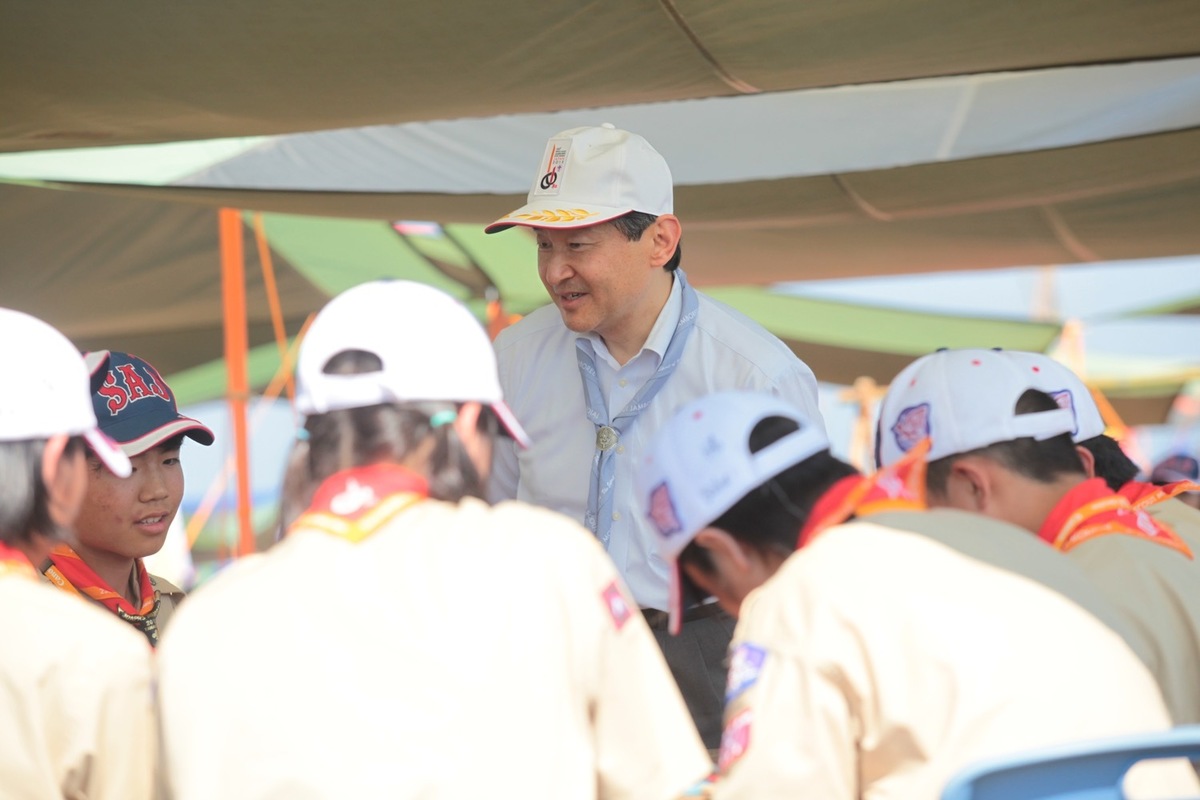 撮影:生津勝隆会場を訪れた皇太子殿下は、色とりどりのテントが張られたキャンプサイトを訪れ、スカウトたちを激励されたほか、各国のスカウト活動を展示したテントなどをご覧になった。また、大会期間中最大のイベントである「アリーナショー」でお言葉を述べられた。