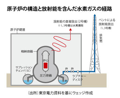 年間20mSvの背景線量は、炉心溶融を起こした1、3号機のベントからの放射能放出による。ベントを行うと、格納容器のサブレッションチェンバ(SC)に溜めた大量の水を潜らせた上で放射能が放出される。年間20mSvという背景線量は水を潜らせることによる除染効果が存外に大きいことを示している。