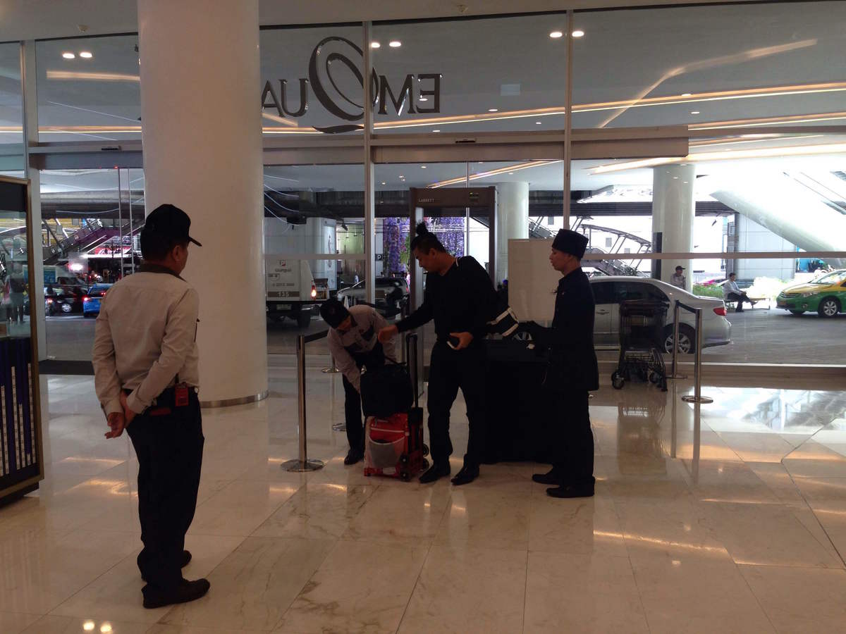 容疑者は逮捕されたものの、いまだバンコクのいくつかのショッピングモールでは入り口でボディチェックが行われている