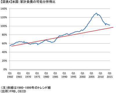 これが主要国通貨の状況だが、他方でドルの急上昇はアメリカの景気回復が続き、量的緩和終了が見えるとともにその後の利上げ観測が強まった時期にも符号している。背景にあるのは、何より他国より堅調なアメリカ経済であり、それを支えるサブプライムローンバブル崩壊後の構造調整の進展である。
