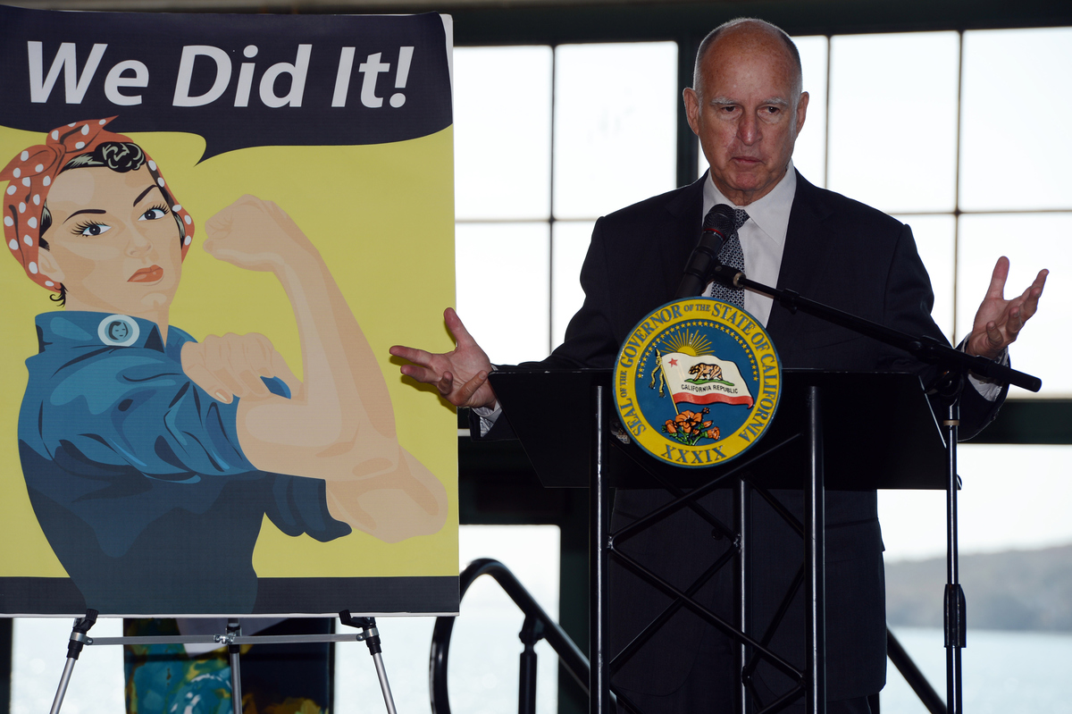 California Fair Pay Actが可決したことを発表するジェリー・ブラウン・カリフォルニア州知事(Getty Images)