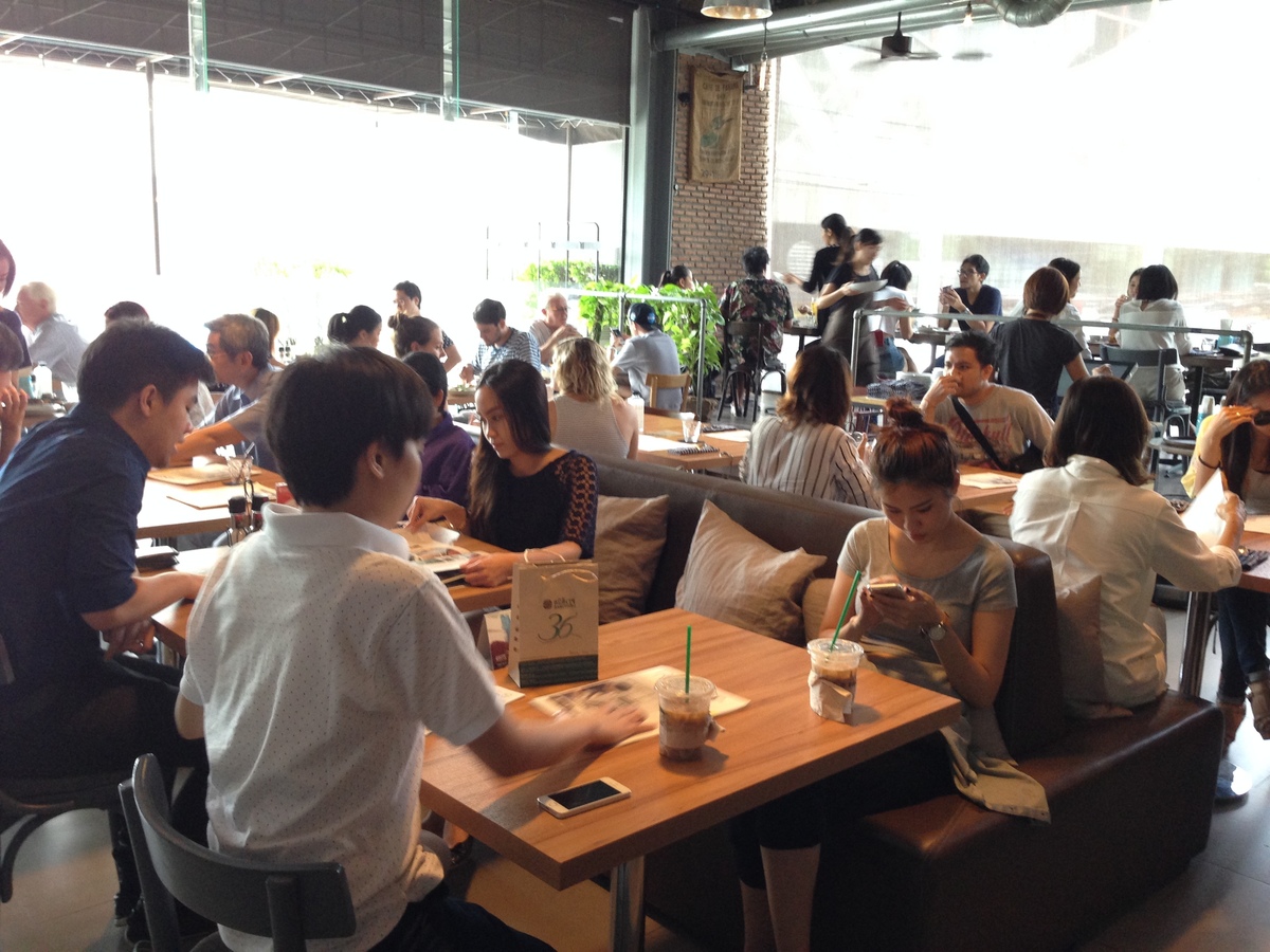 そして、バンコクのカフェブームの火付け役ともいえるのが、「ROAST」(ロースト)グループ。元々は、世界中でコーヒーの買い付けや焙煎を行っていた商社だったが、タイ産のコーヒーを広めたいと立ち上げたのが創業のきっかけとされる。現在、系列を合わせバンコクに3店舗を展開し、さらに拡大中で、その勢いはとどまることを知らない。日本人居住区のスクンビットエリアでも人気を博し、欧米人、富裕層タイ人から確固たる支持を得ている。どの店舗も休日のみならず、平日でも混雑するほどの集客力を有す。
