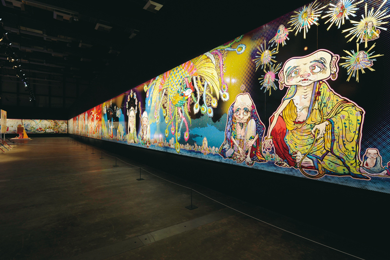 村上 隆 《五百羅漢図》 2012年 個人蔵 展示風景:「Murakami - Ego」アル・リワーク展示ホール、ドーハ、2012年 撮影: GION ©2012 Takashi Murakami/Kaikai Kiki Co., Ltd. All Rights Reserved.