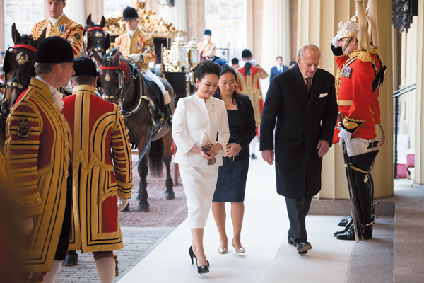 ロンドンっ子の発音に満足そうだった習主席夫人 (画像:WPA POOL / GETTYIMAGES)