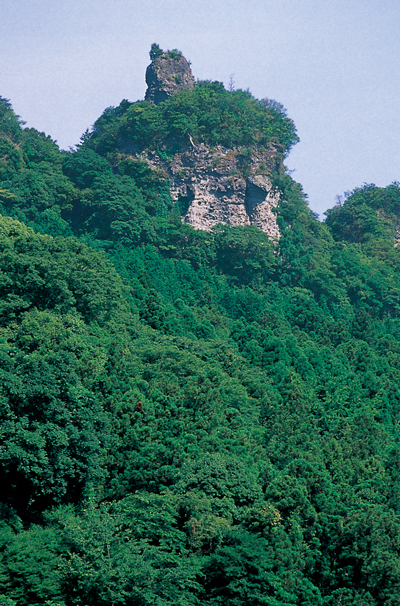 中山仙境を中心とした奇峰連なる夷耶馬溪(えびすやばけい)の1つ、烏帽子岩