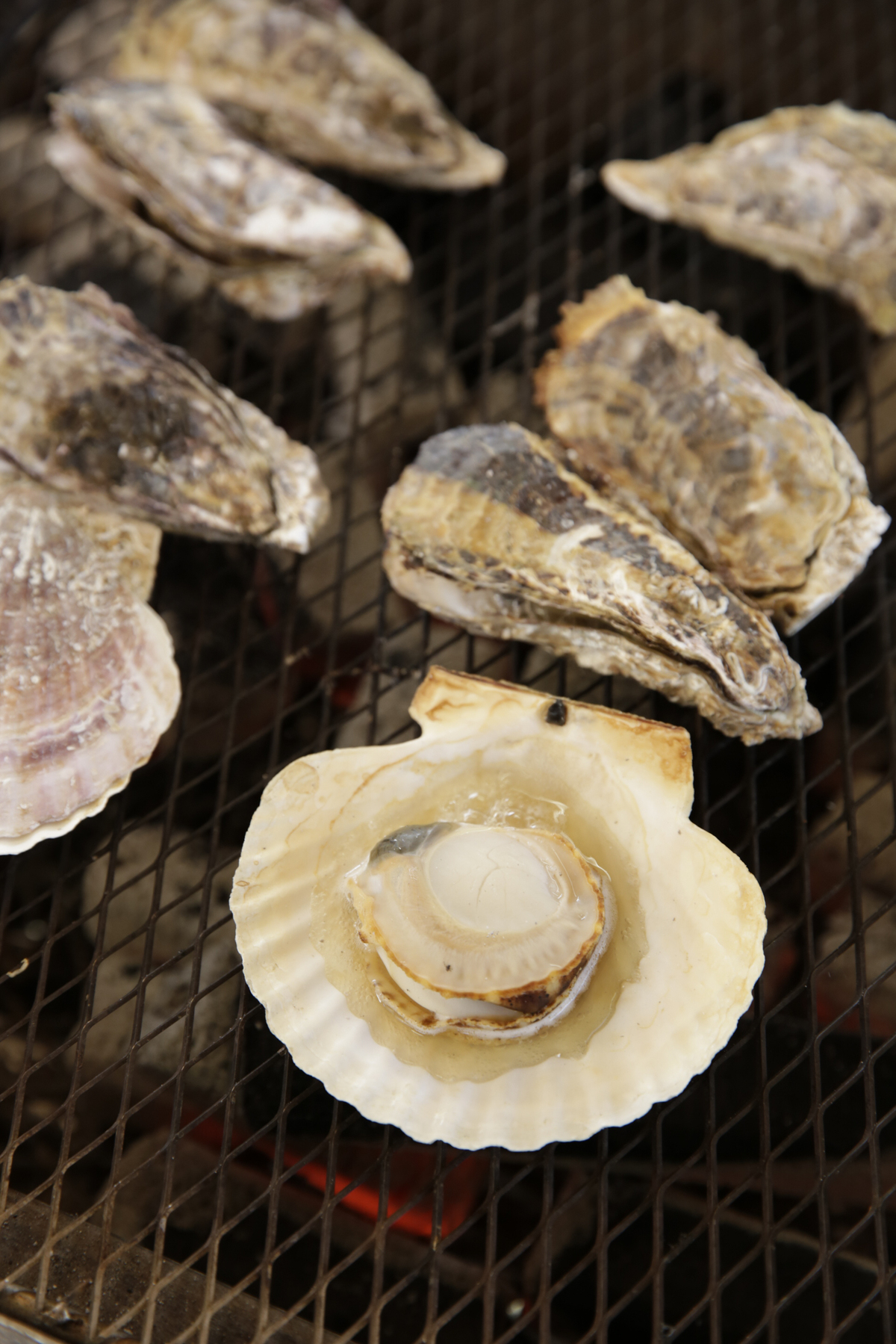 11:20~「相生市立水産物市場 魚稚」で、牡蠣のバーベキューを堪能