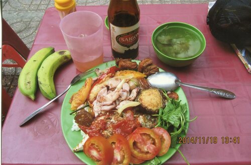 サイゴンの屋台で特盛定食&冷えたビール、バナナのおまけ付き
