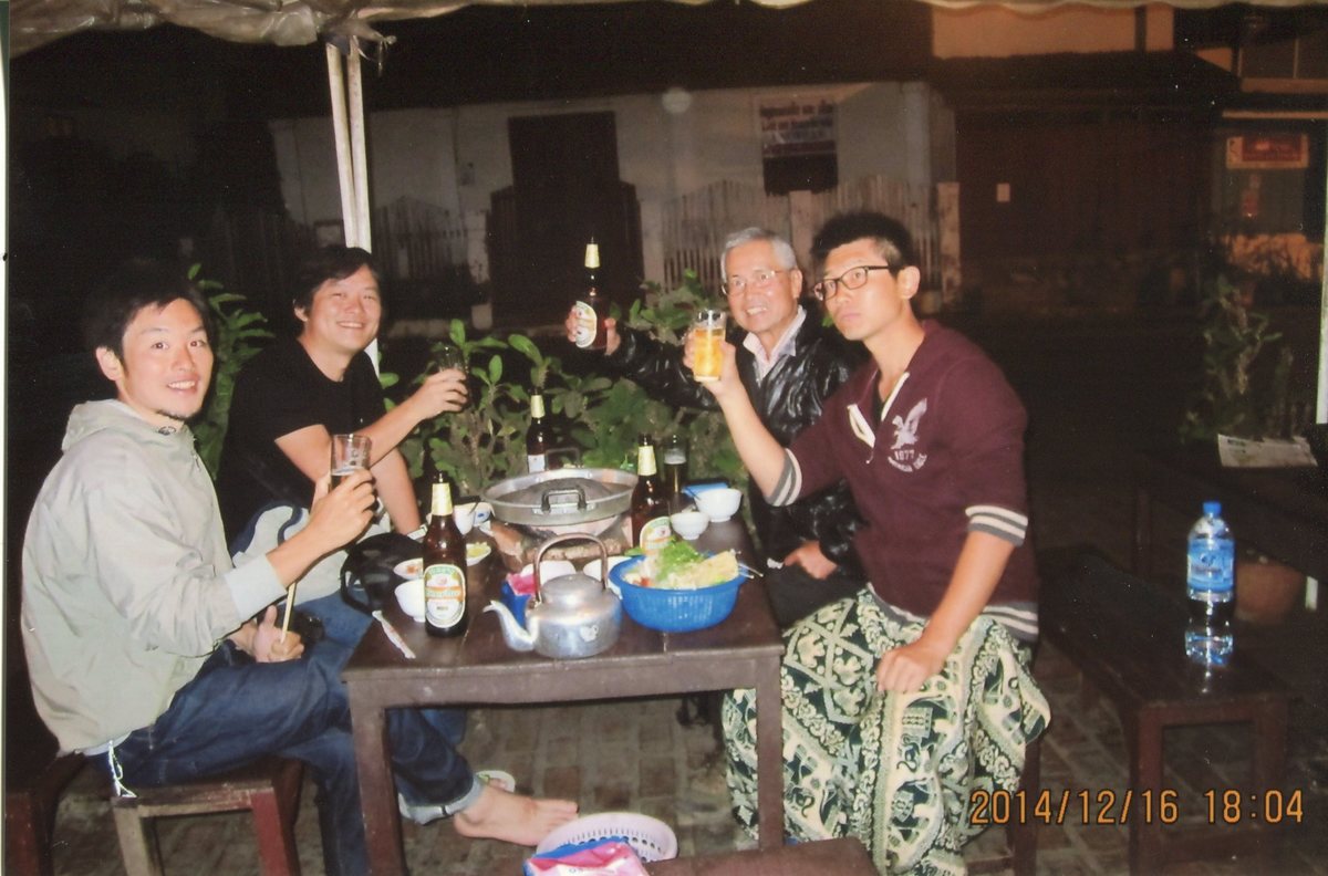 ルアンバパンでラオス風プルコギ鍋を囲む邦人バックパッカーズ