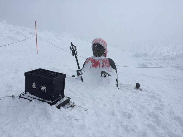 夏には全身を拝むことができるが、冬は肩まで積雪で埋もれてしまう。しかし、今年はお腹のあたりまでしか雪が積もらなかった。