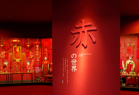 「あずきミュージアム」2階では、暮らしや信仰にまつわる展示を通して、普段の生活にいかにあずきが根づいているか、感じ入る。写真は、邪気を払うとされる「赤の世界」を、あずきの色と重ねて紹介する部屋