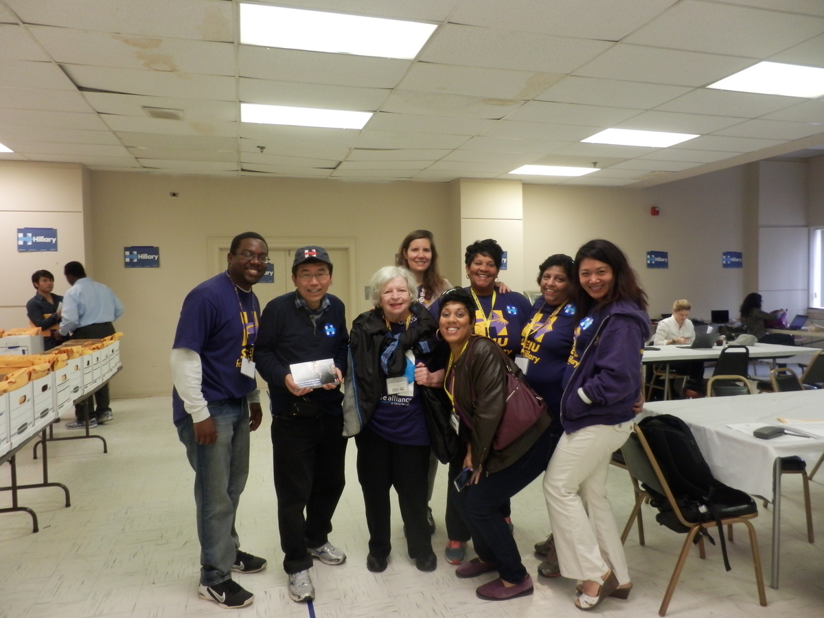 戸別訪問に参加する米国国際サービス従業員労働組合員(筆者撮影@ペンシルベニア州フィラデルフィア)