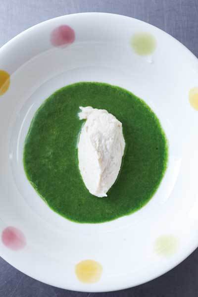さっと席を立った多田は、緑の色鮮やかなソースの上に白いムース状のものが載った皿を運んできた。きれいな一皿である。