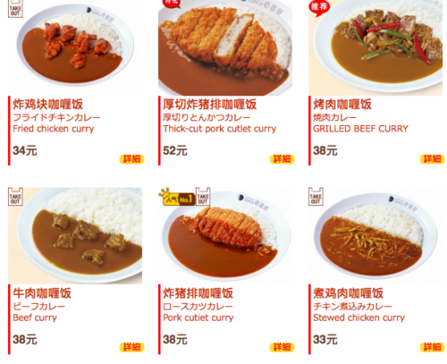 中国人はもともと日本で食べるようなカレーを食べる習慣がない。「カレーを食べる日本文化をそのまま持っていこうと考えたので、日本と全く同じ味のものを出した。04年の中国1号の上海店では日本と同様に男性中心を想定していたが、見たこともない外国料理にチャレンジしようという男性は多くなかった。値段も店員の時間給の5倍程度と、日本では3000~4000円相当となる価格帯で割高と捉えられていた。2号店からは、コンセプトを変えて、女性が入ってみたいと思えるようなオシャレな内装とし、その価格帯にふさわしい場の雰囲気を提供するのに主眼を置いて店内を設計した」。