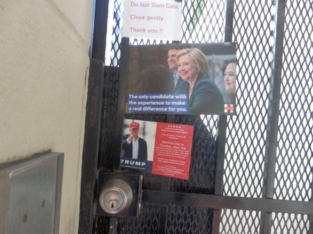 同じ有権者を狙うトランプ陣営とクリントン陣営(筆者撮影@カリフォルニア州サンフランシスコ)
