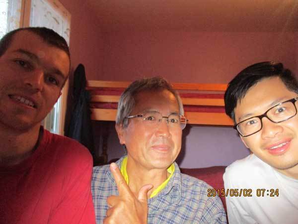 5月1日 (承前)米国の在独軍属(建築家)ジム・ブライアンと雨中行軍の末、やっとのことでLes Gienetianesという村落の慈善団体運営の巡礼宿に到着。先着の学生風の二人の青年が隣の2段ベッドにおり一人は聖書を読みながら熱心に祈っている。