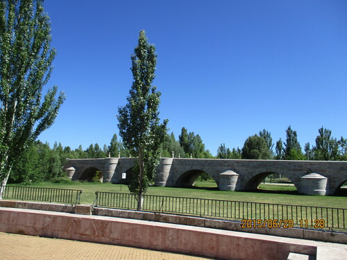 歌合戦の翌朝、並木道を行く三河出身のオーさん。右側は長さ数百メートルある巨大散水機