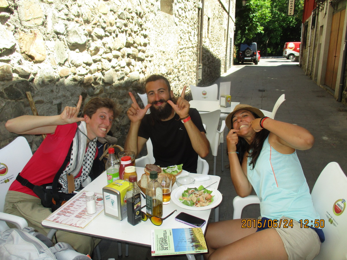 6月24日 カンカン照りのなか27km歩いてポンフェラーダ(Ponferrada)に到着。夕刻キッチンに入るとアイルランド人のレアムと日本人のトモヨさんのカップルが献立を検討していた。