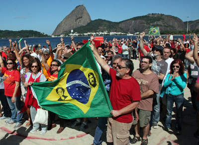 リオデジャネイロ市内では、ルセフ大統領を支持するデモも行われている=今年5月1日
