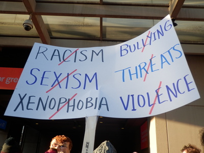 トランプ候補は、陣営のスローガンである「アメリカを再び偉大な国に取り戻す」が刺繍された野球帽を自ら被って集会に登場します。ある集会では、用意してあった野球帽を舞台から支持者に向かって投げ、彼らを活気づけたのです。グッズに投資をする選挙戦略は的中し、今やトランプ支持者は陣営の野球帽にアイデンティティを持っています。戸別訪問の際、筆者はクリントン陣営の帽子を被っていますが、選対の中や集会でクリントン陣営の運動員や支持者が被っているのを殆ど見かけません。勿論、クリントン候補も陣営の野球帽を被っていません。