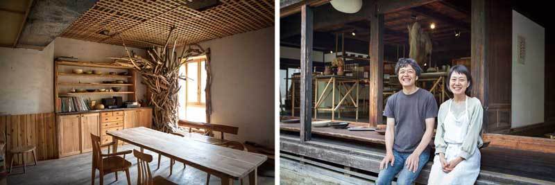 (写真左)ホテルの廃屋を再利用した手作りのアトリエ(写真右)東川裕子さんとパートナーの藤崎均さん