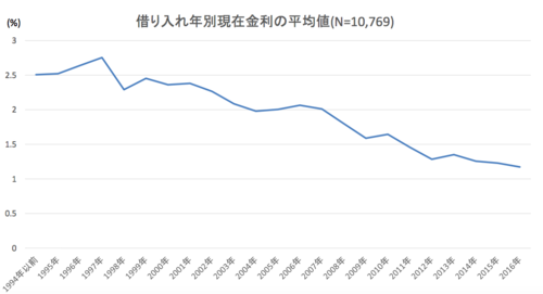 借り換えメリットがどれくらいあるかは、住宅ローンを設定した年に関係してくる。大まかにみて、1999年(平均住宅ローンが年2・5%)から2010年(同1・5%)くらいまでの約10年間にローンを借りたユーザーは、いまの低い金利の適用が得られるローンに借り換えればメリットがあると考えればよいという。