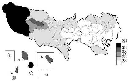 さらに、市区町村別の高齢化率をみると、多摩地方等で高齢化が進行していることが分かる。