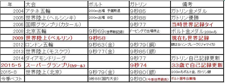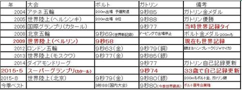 まずは、図2のボルトとガトリンの過去の成績を見て欲しい。