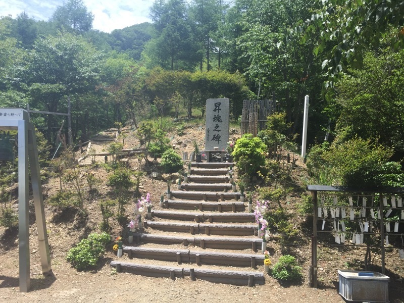 鬱蒼とした森の中、急勾配の登山道を30〜40分登りきったところに小さく開けた場所がある。ここが123便の墜落現場だ。そこに「昇魂の碑」が建てられている。