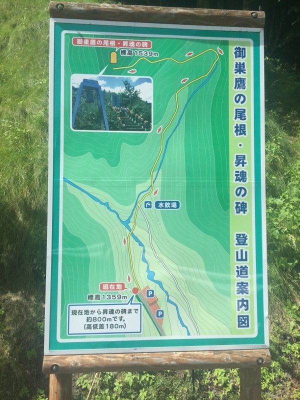 墜落現場には現在「昇魂の碑」という慰霊碑が建てられているが、そこへは駐車場から800m、高低差180mを徒歩で登らなくてはいけない。ちなみに駐車場の手前数キロの地点から携帯電話は圏外であった。