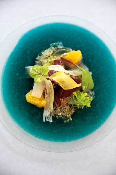 そして今、森は育ち、レストランは満員の客の楽しそうな顔や笑い声に満ちている。この日のランチメニューは、山葵(わさび)の薄葛(うすくず)仕立ての長芋そうめん、山の芋団子・夏蕨(なつわらび)・冬瓜(とうがん)のあんかけ、鰹(かつお)の黒胡椒ソテーと旬野菜のサラダ、大和丸茄子と新生姜(しんしょうが)の葛うどんパスタ、メインの季節の揚物は月山筍(がっさんだけ)の磯辺巻き揚げ、ヤングコーン、吉野田舎こんにゃくのおかか揚げ、一夜干しイカのパン粉揚げ粒うにソースのせ、新牛蒡(しんごぼう)と春菊のかき揚げ。旬の食材を使い、器や盛りつけにも季節感を漂わせ、すべてに惜しみなく手間がかけられている。それにお膳とデザートで、税込み3240円。月ごとにメニューを変えるからリピーターが増えるのもよくわかる。